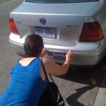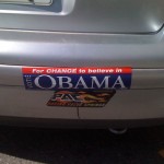 - Lauren putting an Obama bumper sticker on her car.