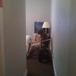 - The skinniest hotel hallway ever.